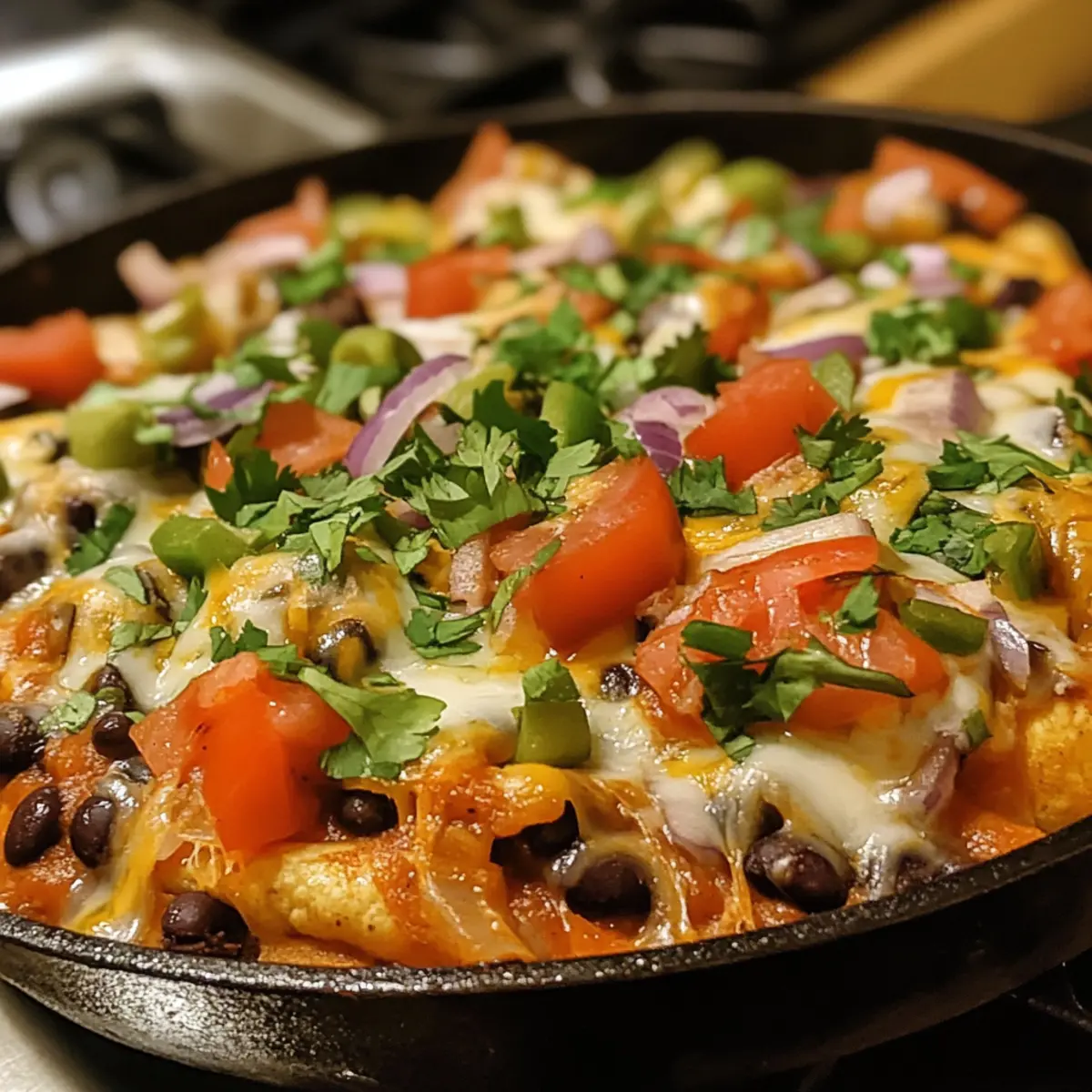 Once broiled to perfection, remove the skillet from the oven, being careful of the hot handle. Serve immediately, garnishing each portion with fresh cilantro and a dollop of Greek yogurt. The bright colors and creamy texture will enhance your Butternut Squash and Black Bean Enchilada Skillet, making it as delightful to the eye as it is to the palate.
