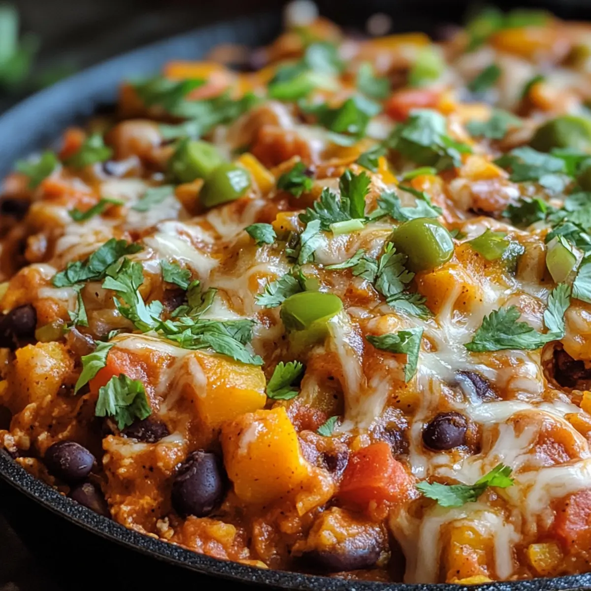 Delicious Butternut Squash and Black Bean Enchilada Skillet