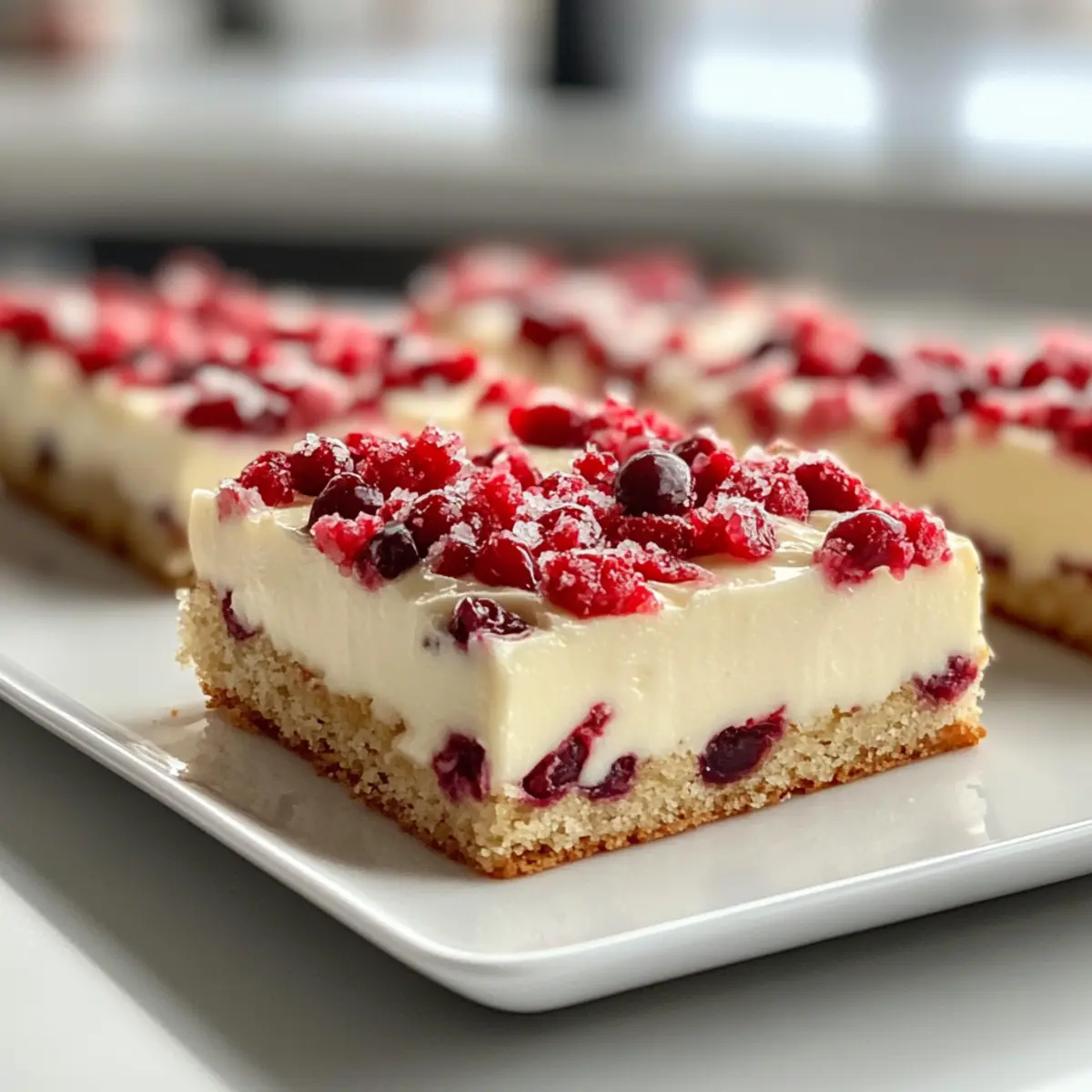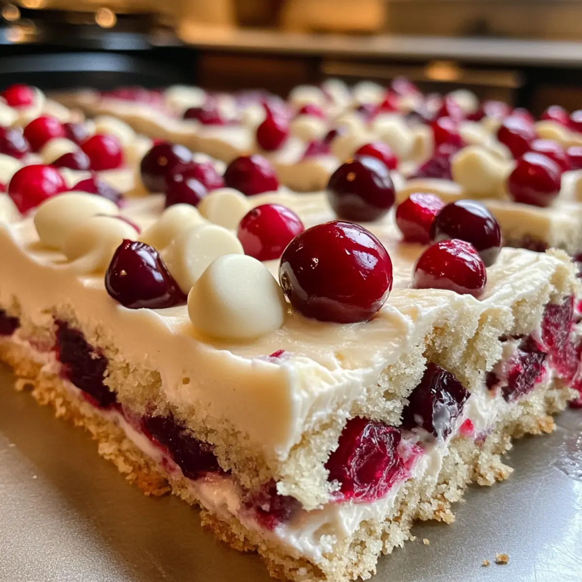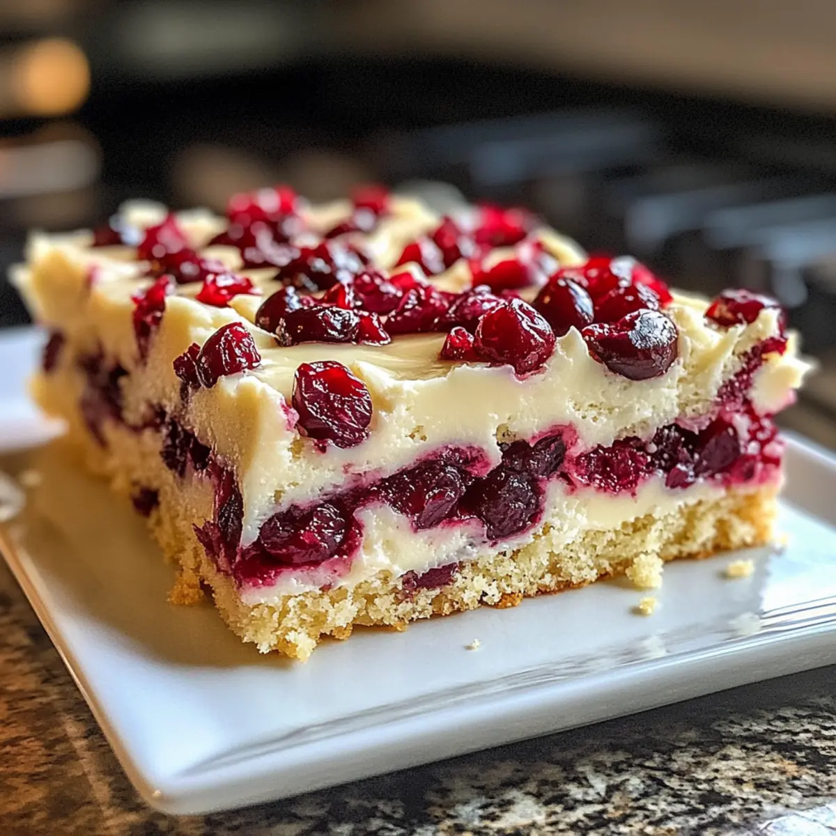 - Frost the cooled bars and sprinkle chopped cranberries on top.