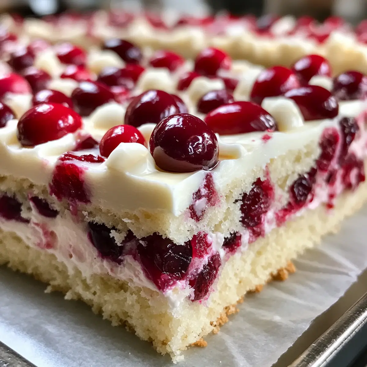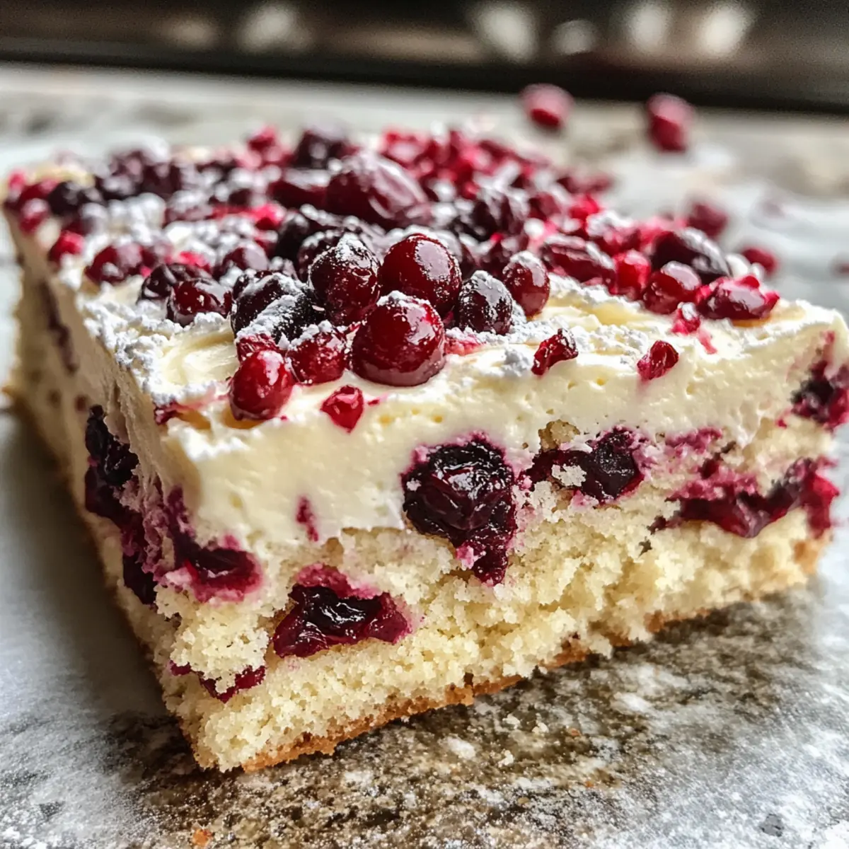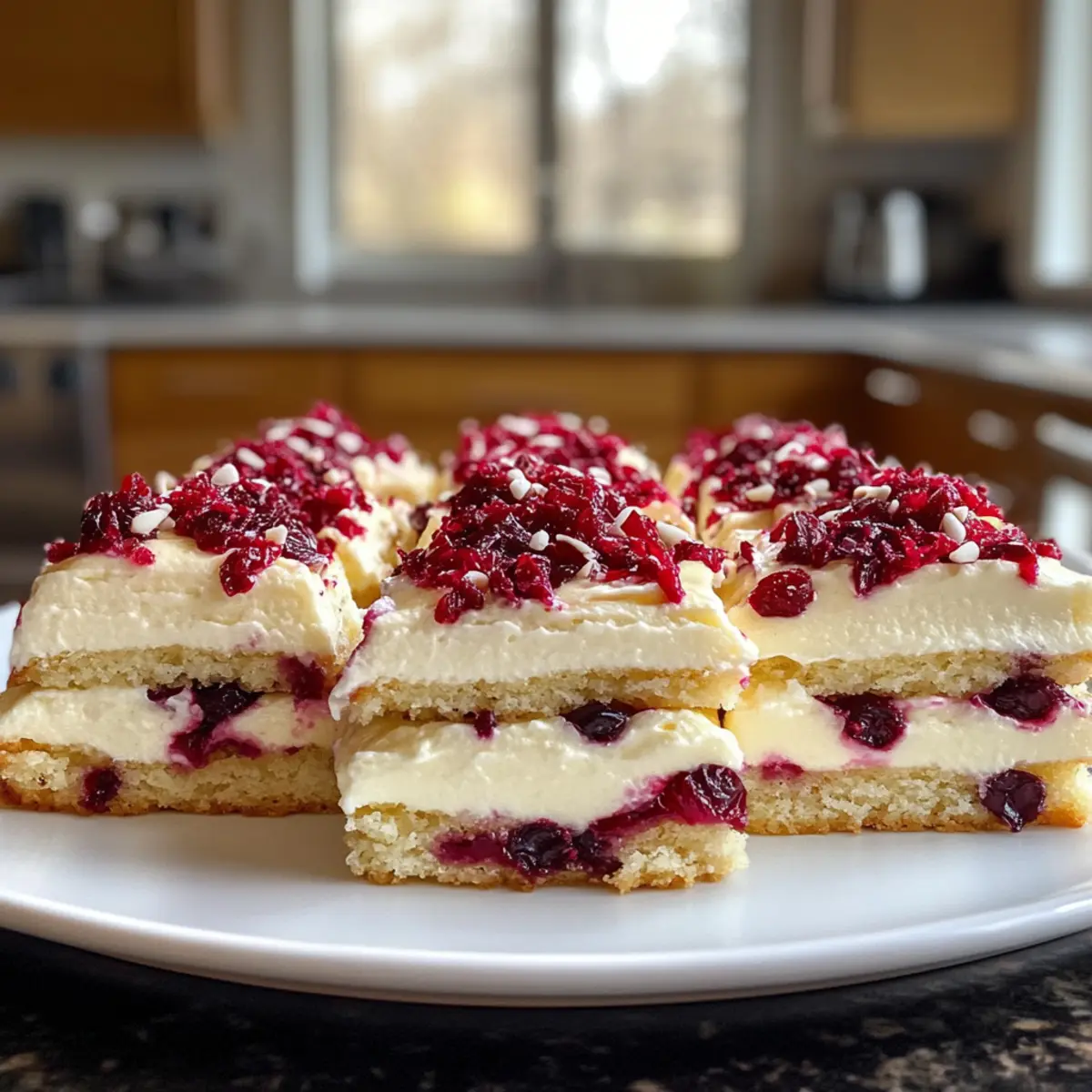 - Frost the cooled bars and sprinkle chopped cranberries on top.