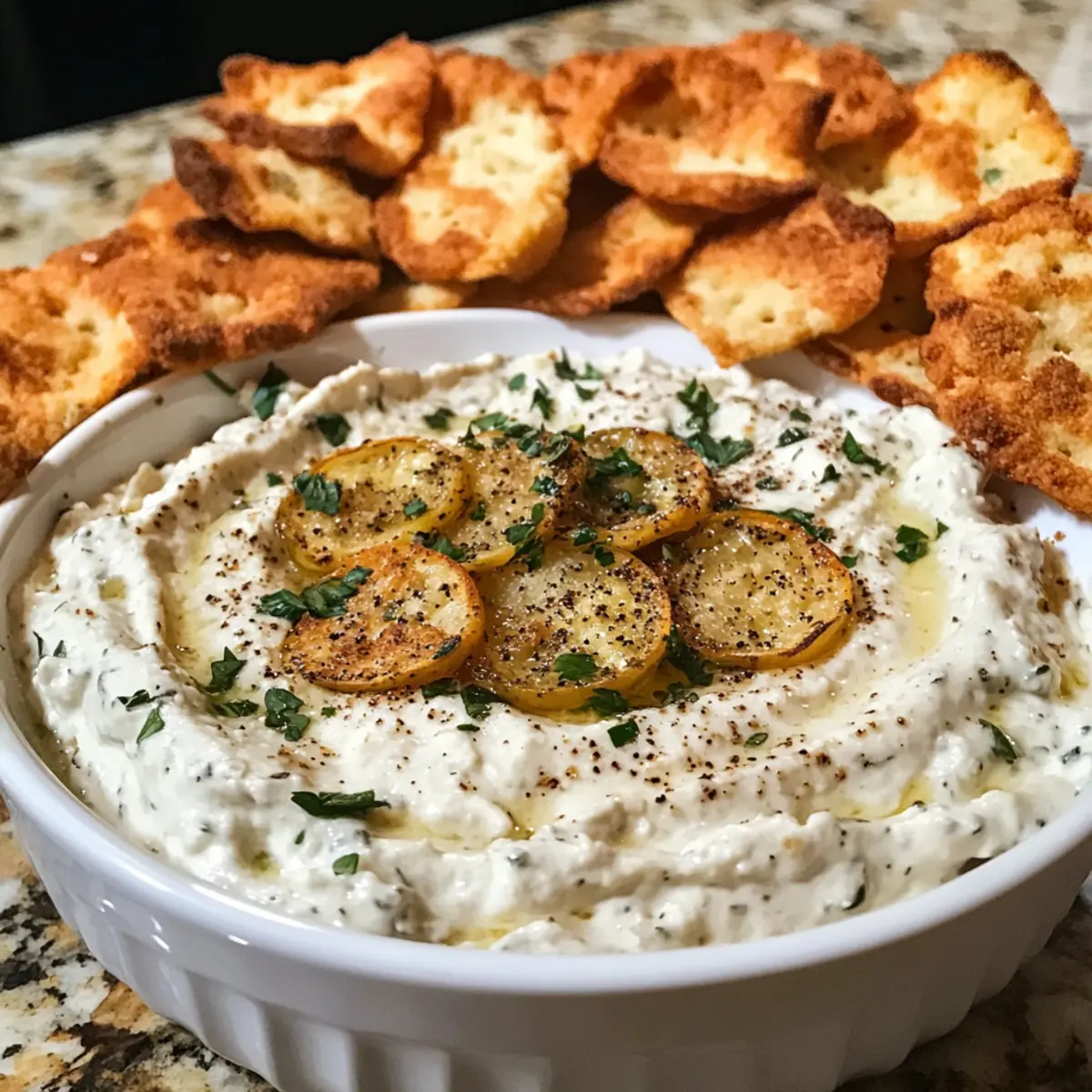 Tzatziki Dip with Pita Chips: Cool and creamy tzatziki brings a refreshing element, perfect for dipping alongside the flavorful salad, adding a zing of cucumber and garlic.