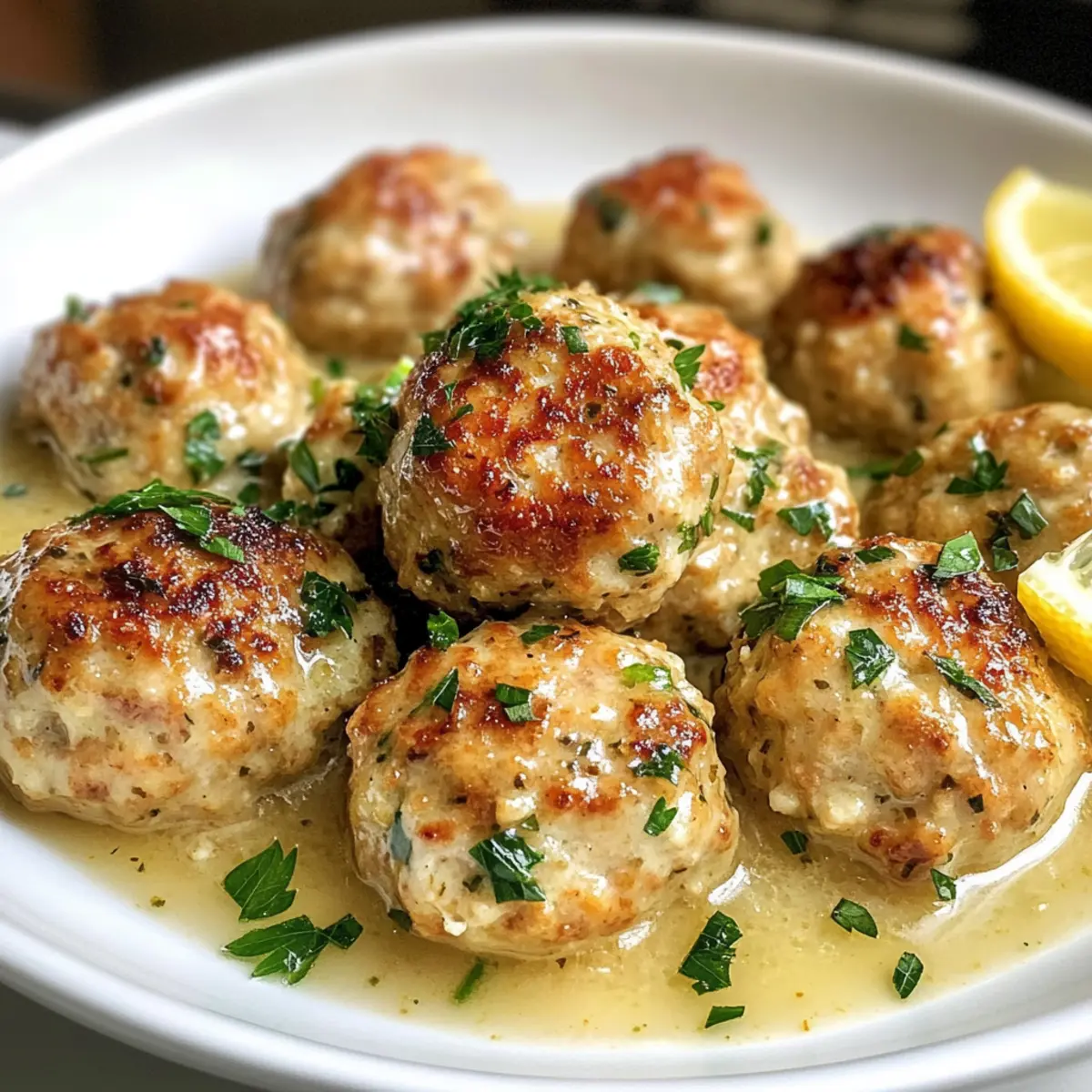 Savory Chicken Romano Meatballs with Lemony White Wine Sauce