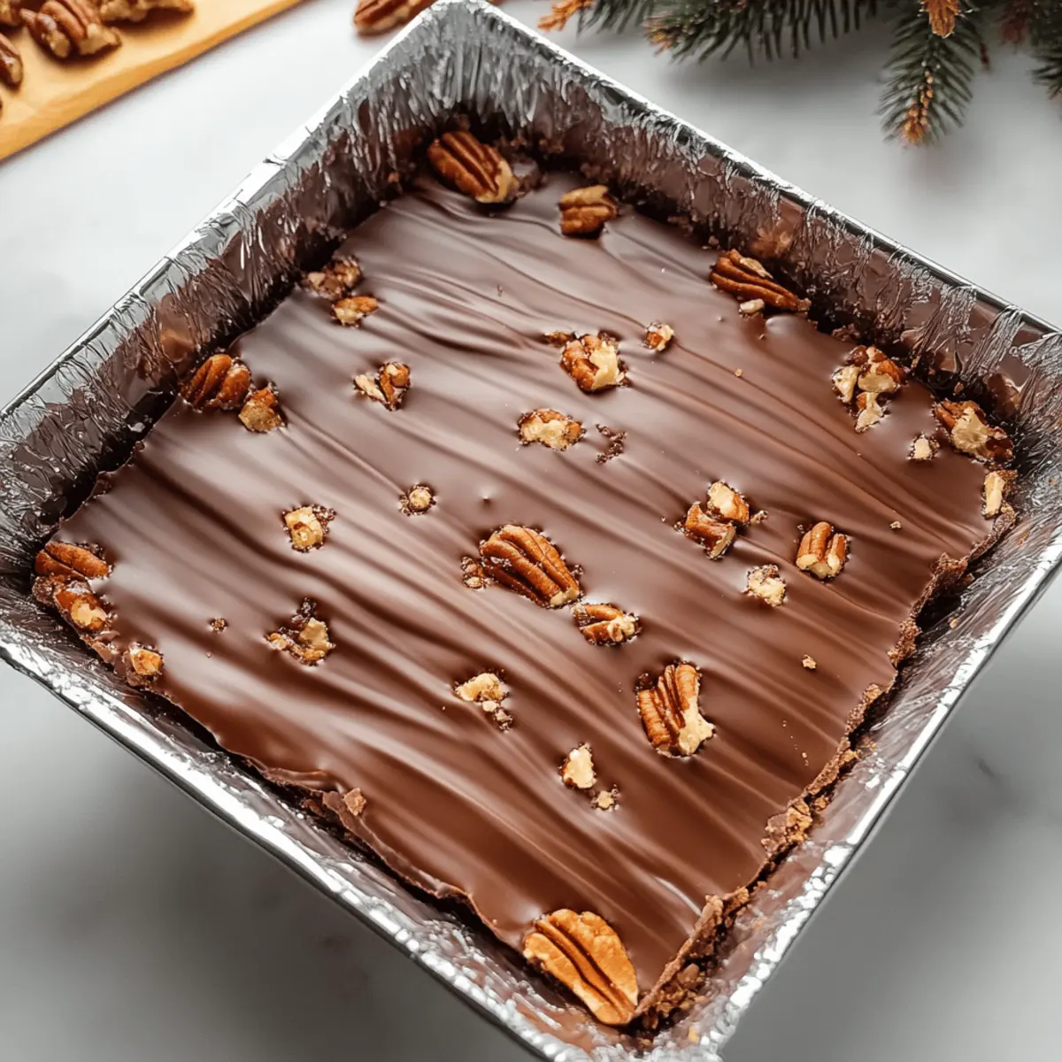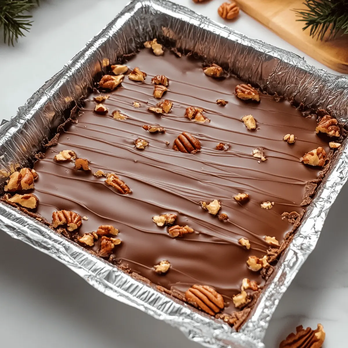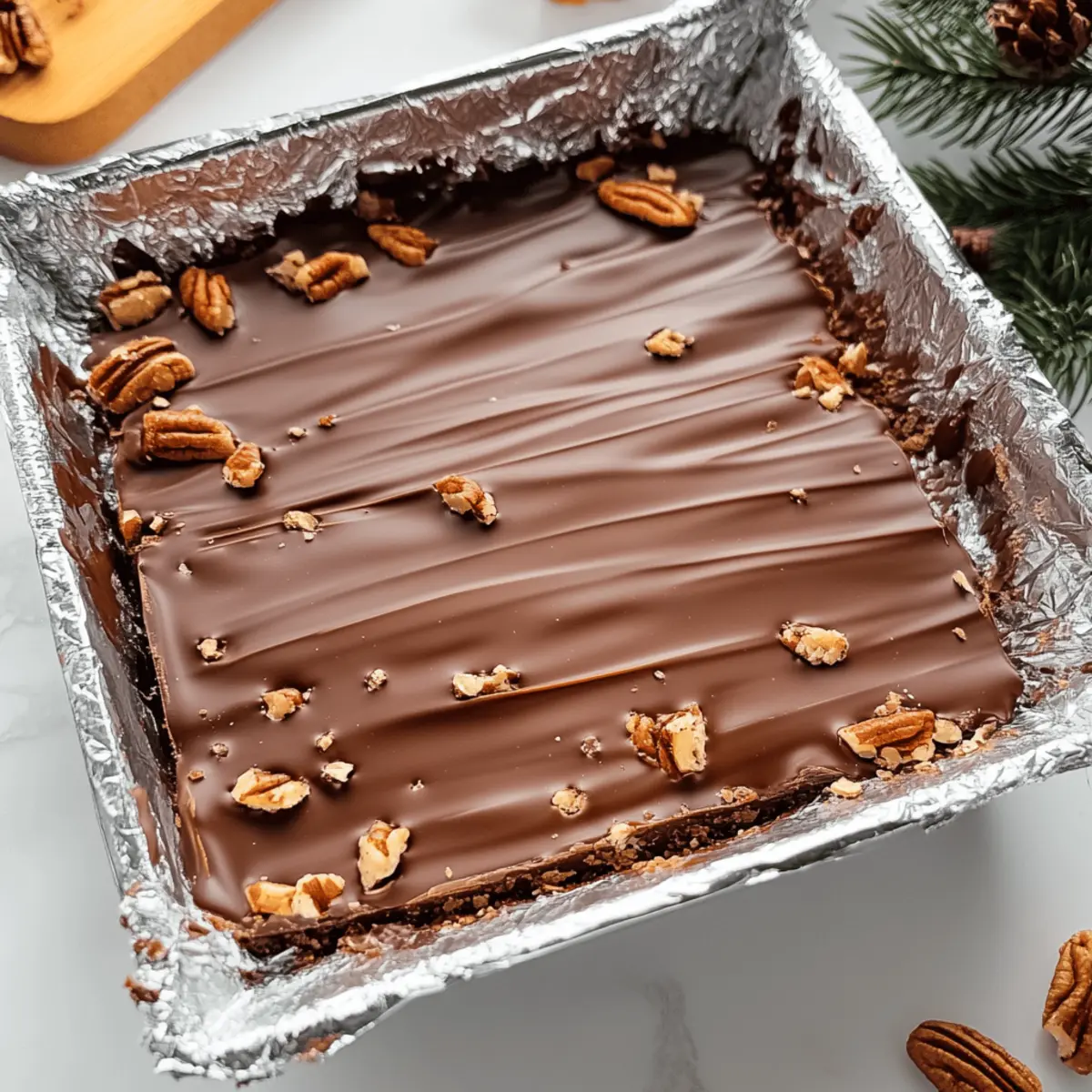 Evenly spread the chopped pecans or almonds across the bottom of the prepared baking dish. Press them gently into the dish to create a solid nut base for the toffee. This will add that delightful crunch and nutty flavor every time you bite into your finished toffee.