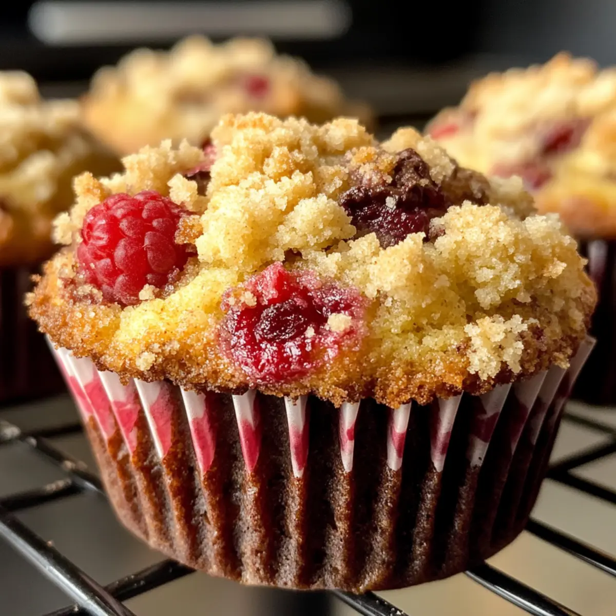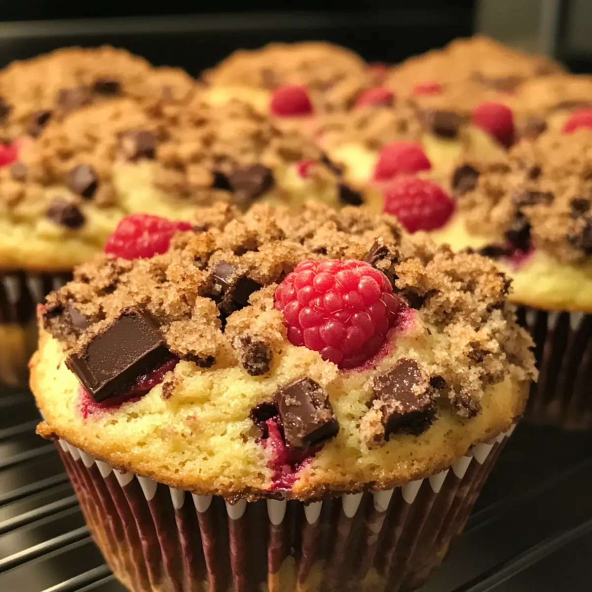 Decadent Dark Chocolate Chunk Raspberry Crumb Muffins to Indulge in