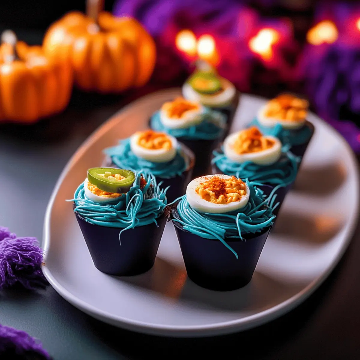 • Pumpkin Soup Shots: Comforting and creamy, these adorable soup shots make a warm counterpart to the light salad. The seasonal flavor of pumpkin ties in beautifully with the Halloween theme while providing a cozy touch to your meal.