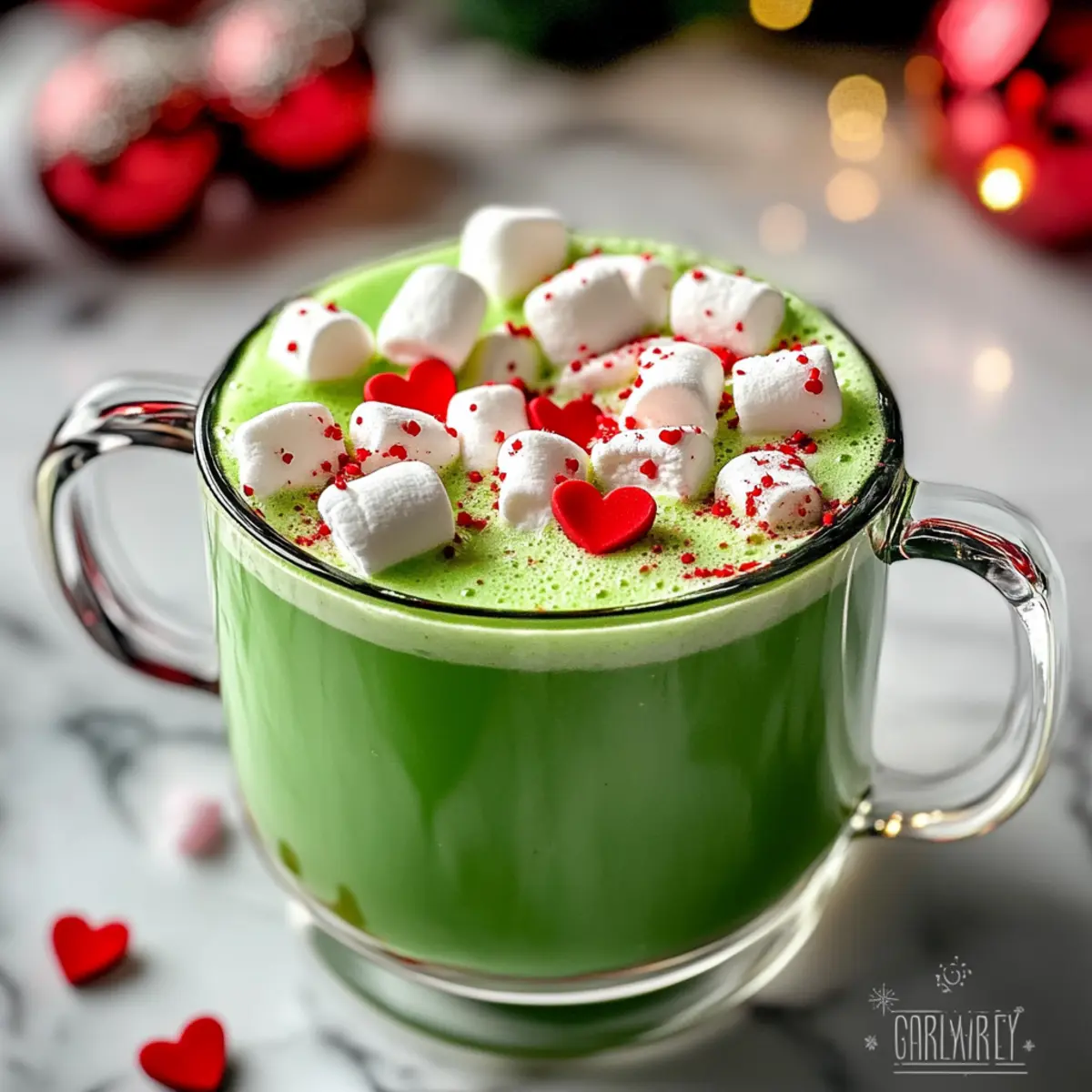 Generously top each mug of Grinch Hot Chocolate with fluffy mini marshmallows, letting them create a cozy layer on top. Add a sprinkle of red heart sprinkles or crushed peppermint candies for extra flair. This final touch not only adds sweetness but also enhances the festive appeal, making each mug a delightful treat.