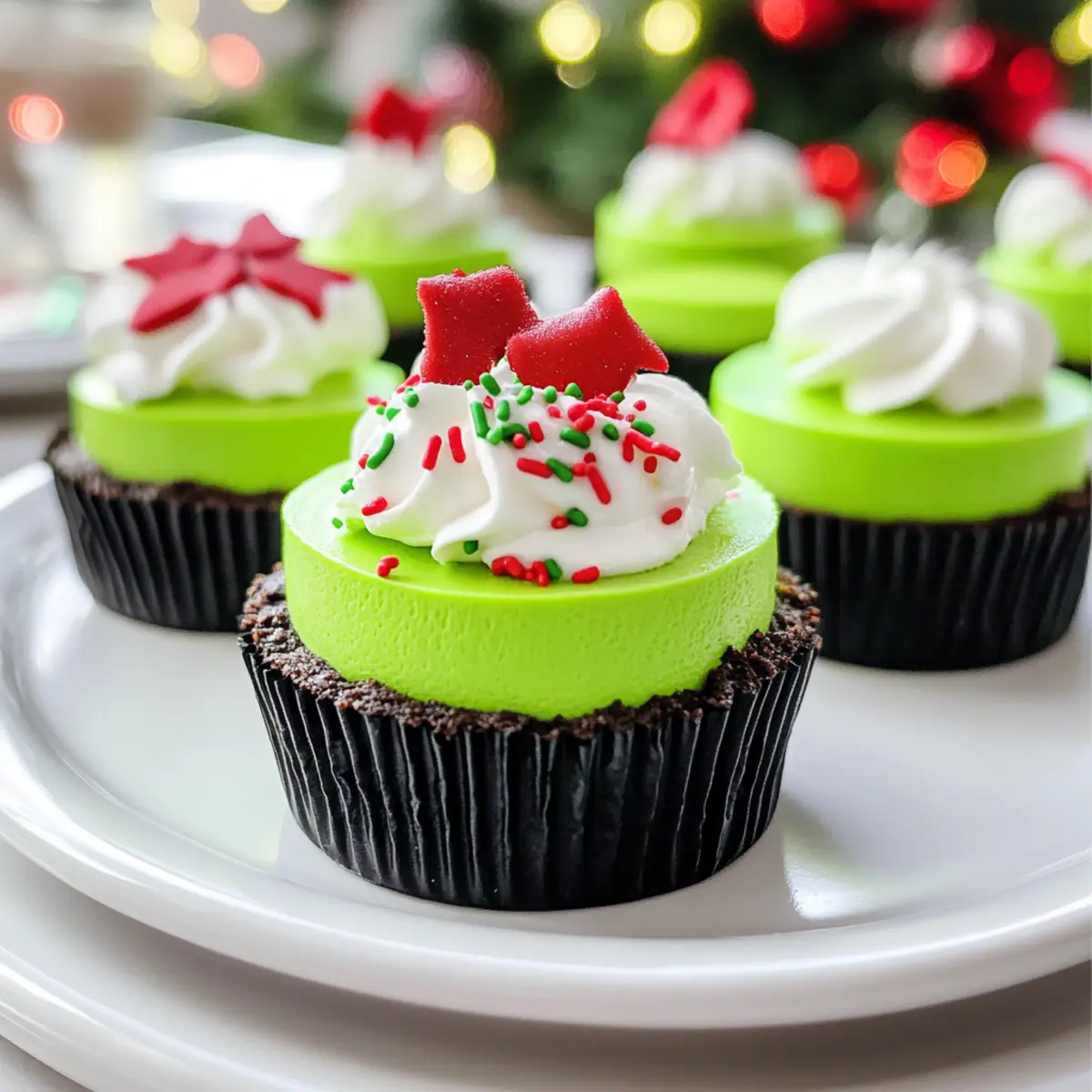 Before serving, top these delightful mini cheesecakes with whipped cream and festive sprinkles if desired. This final touch adds a celebratory flair to your Grinch Mini Cheesecakes, making them even more appealing to both kids and adults alike!