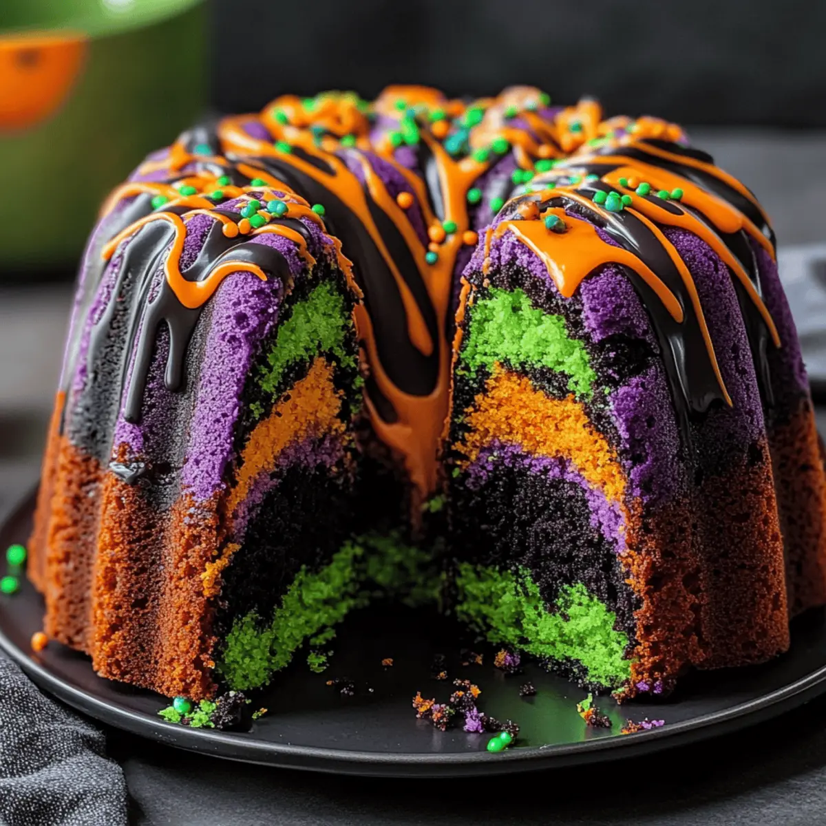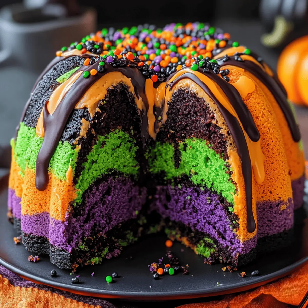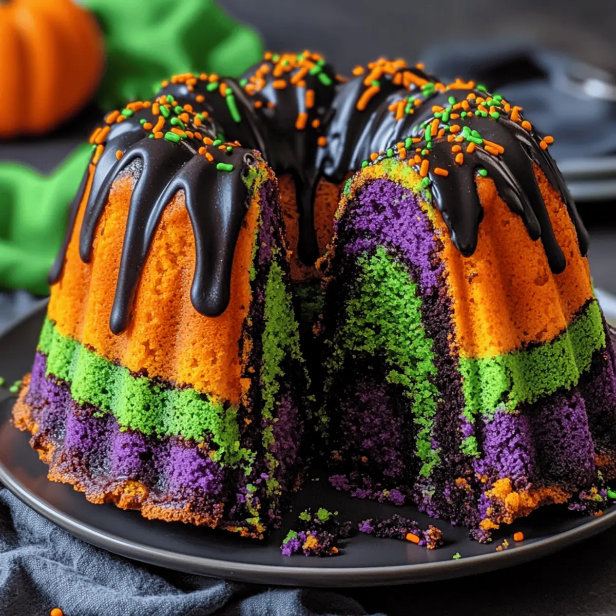 Colorful Halloween Bundt Cake That's Spooky and Delicious
