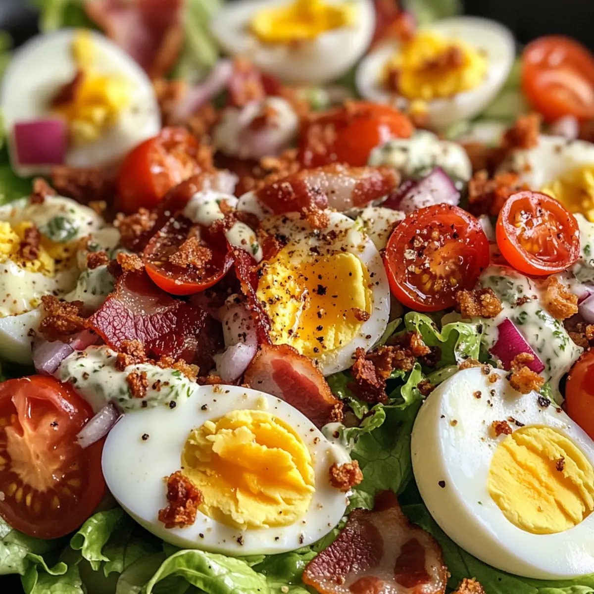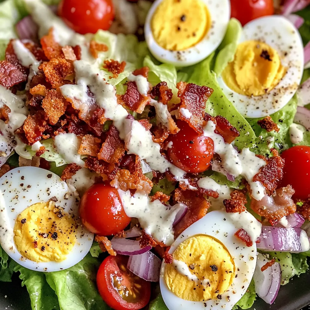 Feel free to get creative with your toppings! Beyond the classic bacon and hard-boiled eggs, you can add diced avocado, crumbled blue cheese, or even roasted nuts for a delightful twist. The more the merrier! Each addition brings a different flavor and texture, making your salad special every time.