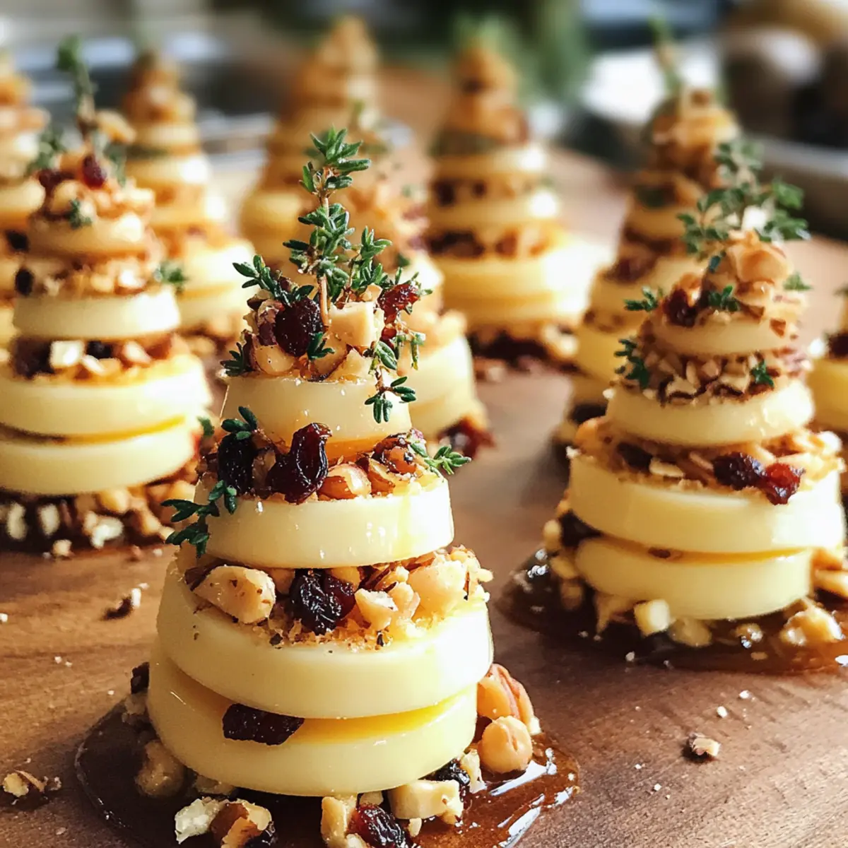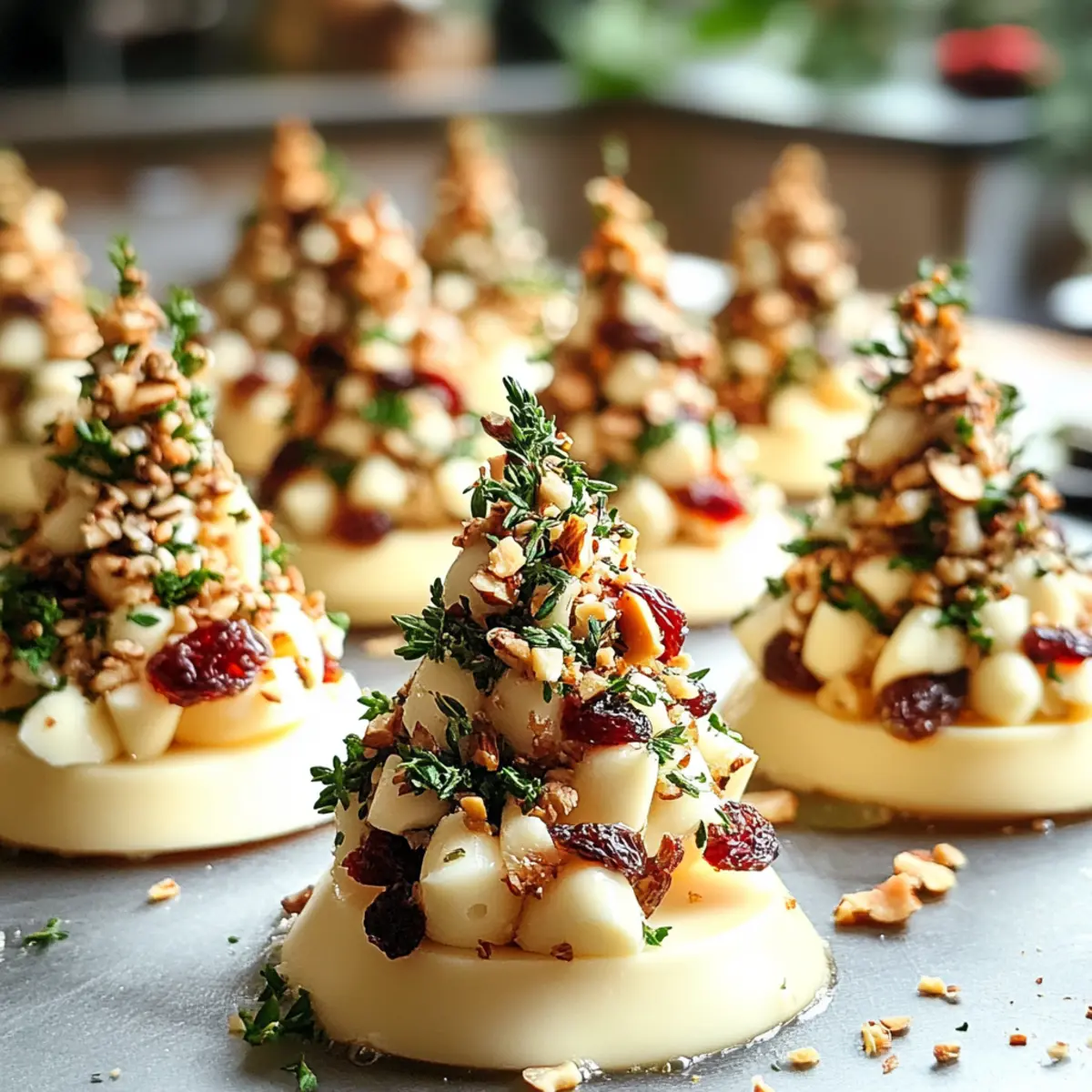 While the brie chills, finely chop your choice of nuts and dried fruits. In a mixing bowl, combine the chopped ingredients, and toss them with a pinch of salt and fresh herbs if desired. This flavorful coating adds a delightful crunch and festive color to your Mini Brie Christmas Trees.