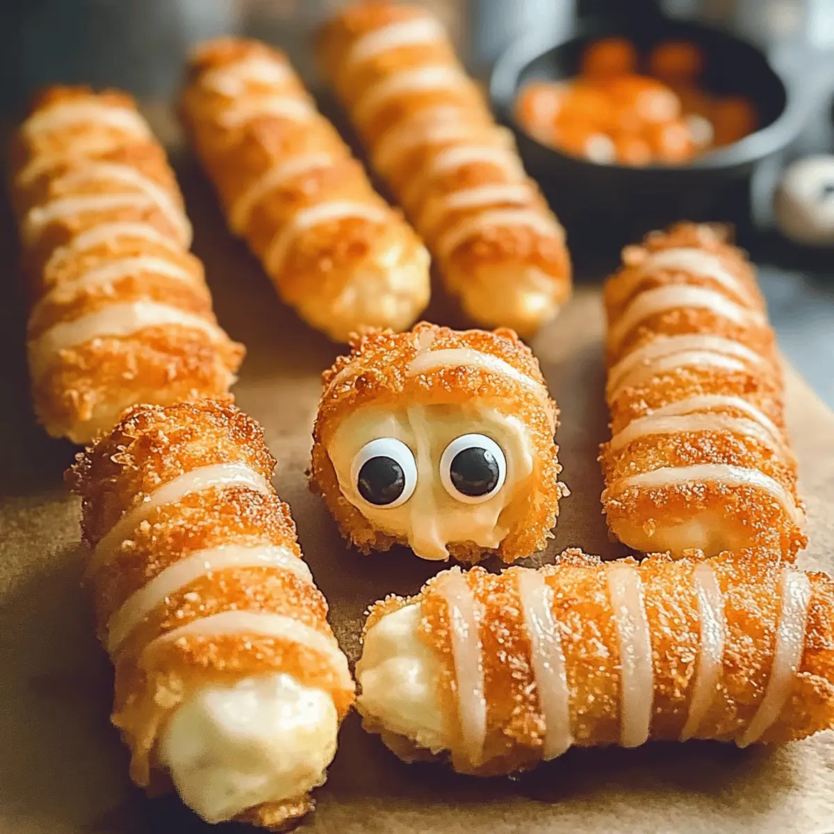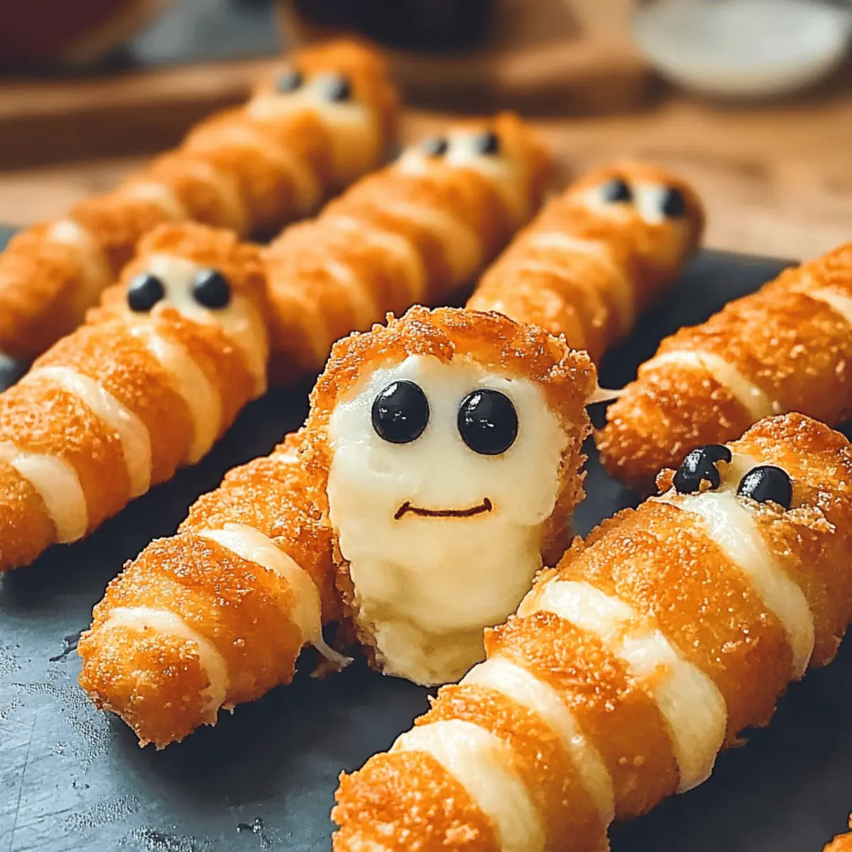 Ghoulish Fun: These Mummy Mozzarella Sticks bring a festive flair to your Halloween festivities, making them not only delicious but also a conversation starter.