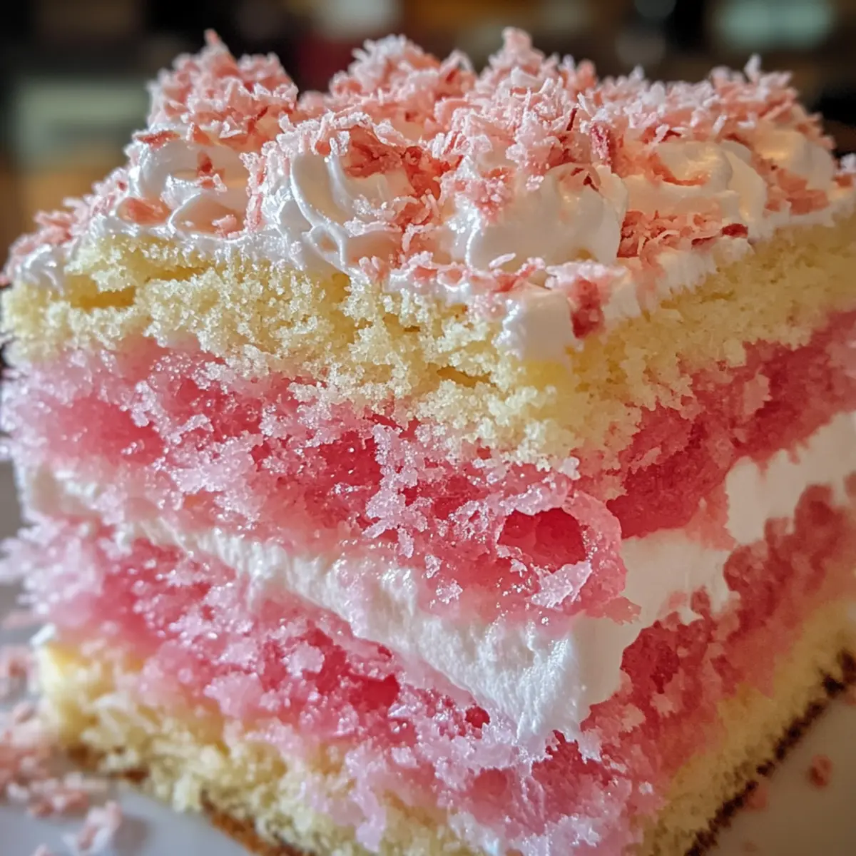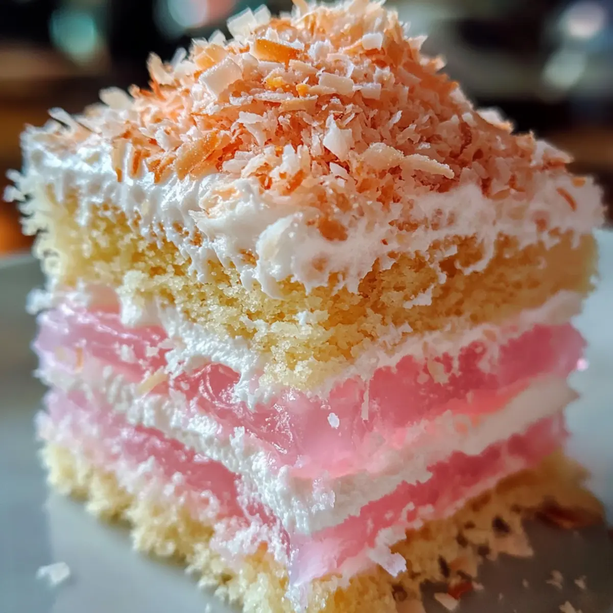 Textural Delight: The airy vanilla sponge combined with the sticky jelly and crunchy coconut offers a delightful variety of bites.