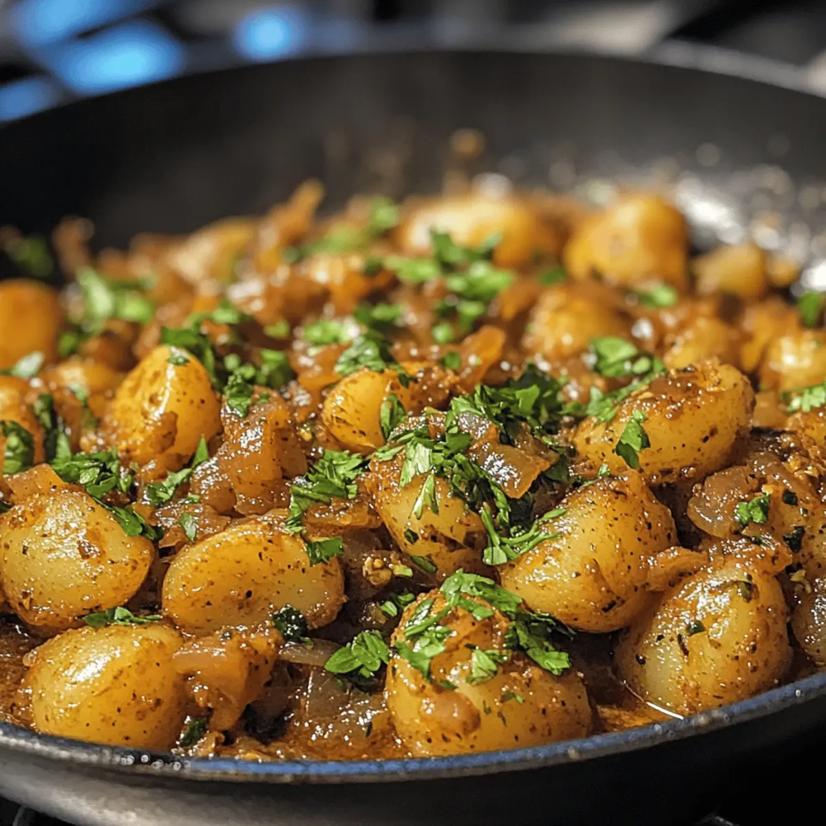 Pour in enough water or vegetable broth to fully cover the potatoes, stirring gently to combine. Increase the heat to bring the mixture to a gentle simmer, then reduce to low, covering the skillet. Let the Dopiazeh Aloo simmer for about 15–20 minutes, until the potatoes are tender and can be easily pierced with a fork.