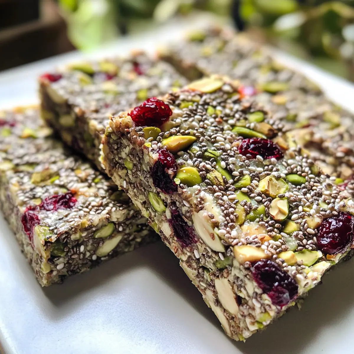 Pistachio Cranberry Chia Bars combine a satisfying crunch with chewy sweetness, offering a healthy snacking option.