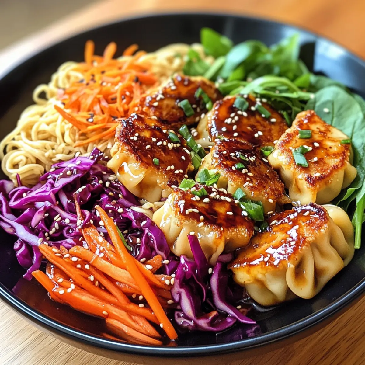 - Return the cooked potstickers to the skillet, gently folding them into the noodle mixture. Allow everything to heat together for an additional minute. Once combined, remove from heat, and garnish with sliced green onions and optional sesame seeds. Serve your fragrant Potsticker Noodle Bowls hot and enjoy the delightful flavors!