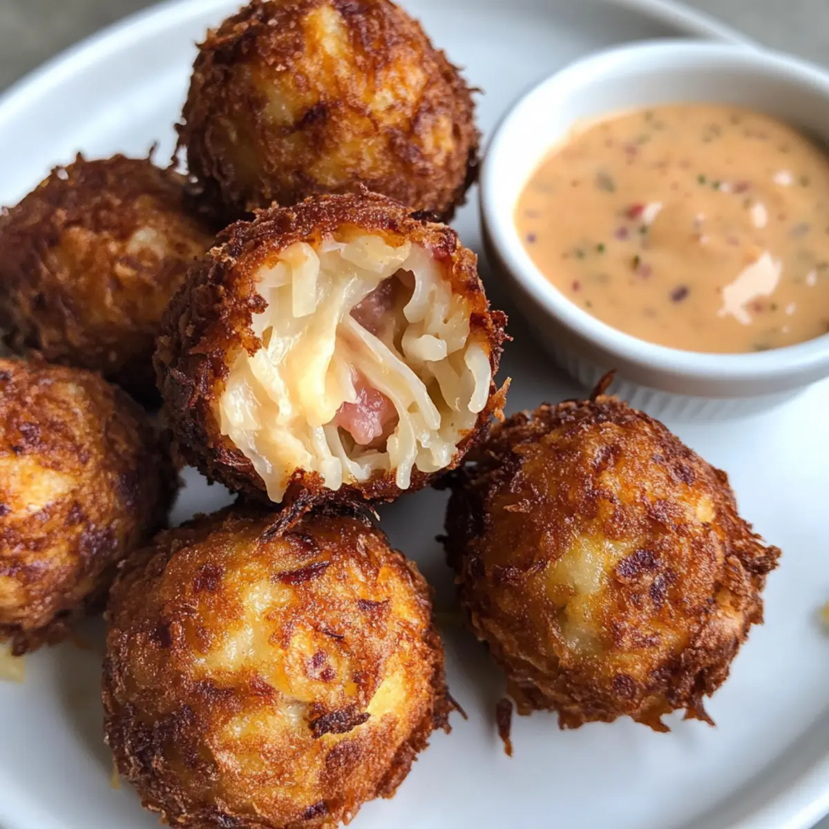 Crispy Reuben Balls with Spicy Thousand Island Dip Delight