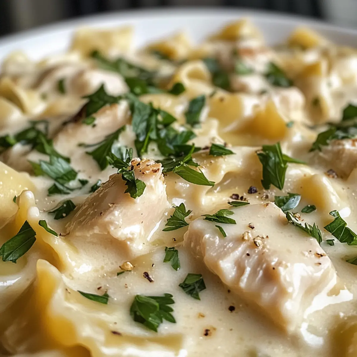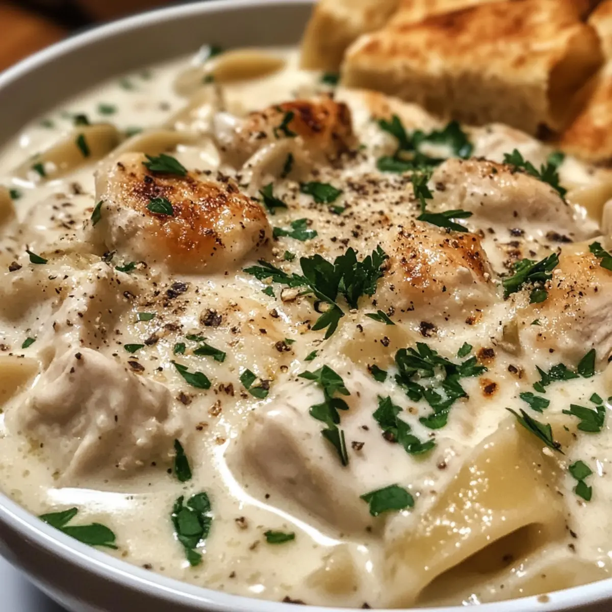 Creamy Roasted Garlic White Chicken Lasagna Soup Bliss