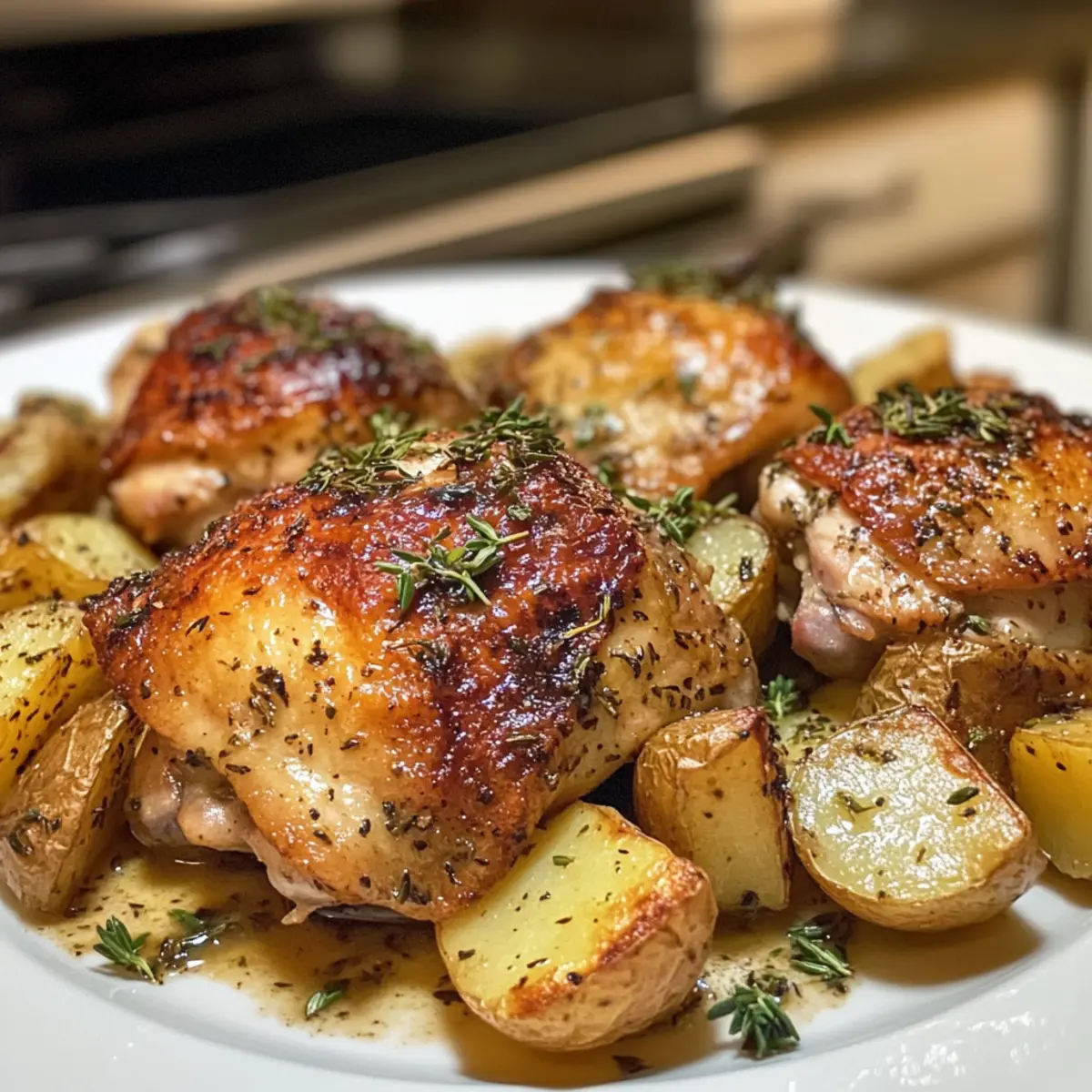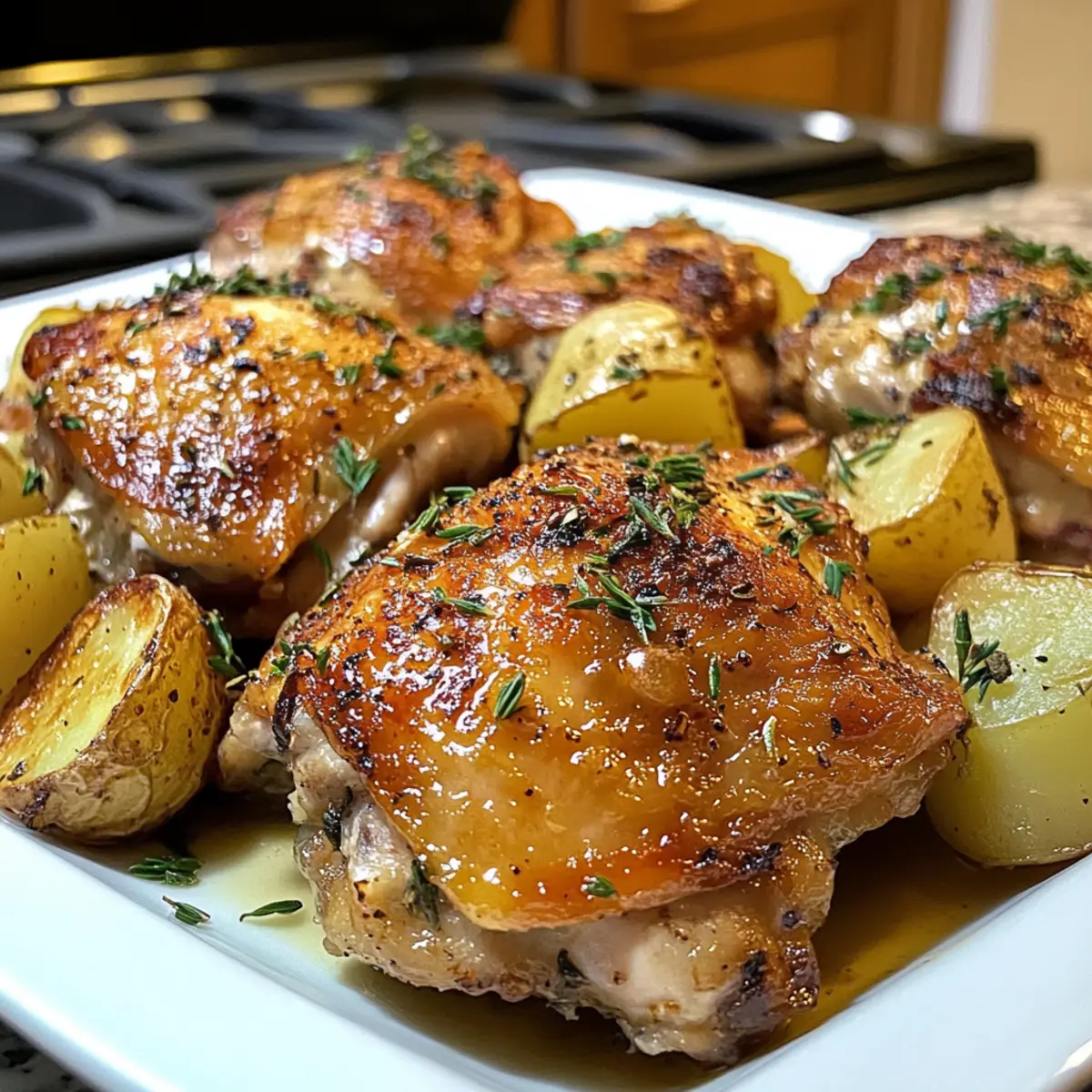 These Rosemary and Thyme Chicken Thighs are perfect for meal prep, allowing you to enjoy a delicious dinner on busy weeknights! You can prep the chicken by seasoning it with salt and pepper, then refrigerate it for up to 24 hours to enhance the flavor. Additionally, chop your russet potatoes and store them in an airtight container for up to 3 days to maintain their freshness. When you’re ready to cook, simply whisk together the sauce and cover the chicken and potatoes before baking as per the instructions. This not only saves time but ensures that your meal is just as flavorful and satisfying!