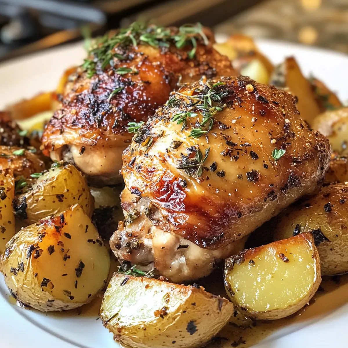 “Dinner’s ready!” echoed from the kitchen as I unveiled a fragrant dish that instantly transported me to a sunlit herb garden. I couldn’t resist sharing this delightful Rosemary and Thyme Chicken Thighs with Roasted Potatoes, a recipe that combines freshness and comfort in one easy pan. This meal brings together juicy, tender chicken and fork-tender potatoes, all drizzled in a sweet balsamic sauce that ties it together perfectly. The beauty of this dish lies in its minimal prep time and maximum flavor, making it ideal for busy weeknights or special gatherings alike. Plus, the vibrant aroma of fresh herbs wafting through your home is simply irresistible! So, are you ready to elevate your dinner game and bring some herbal magic to your table?