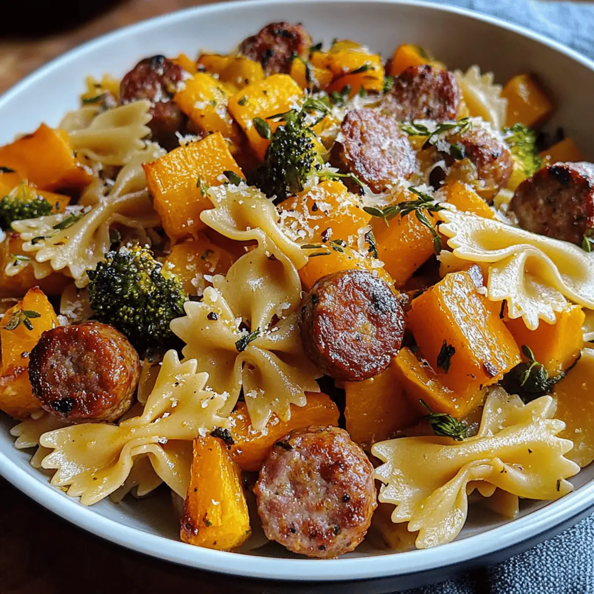 - Sprinkle fresh thyme leaves over the dish before serving. Enjoy your Sausage Pasta Squash hot!