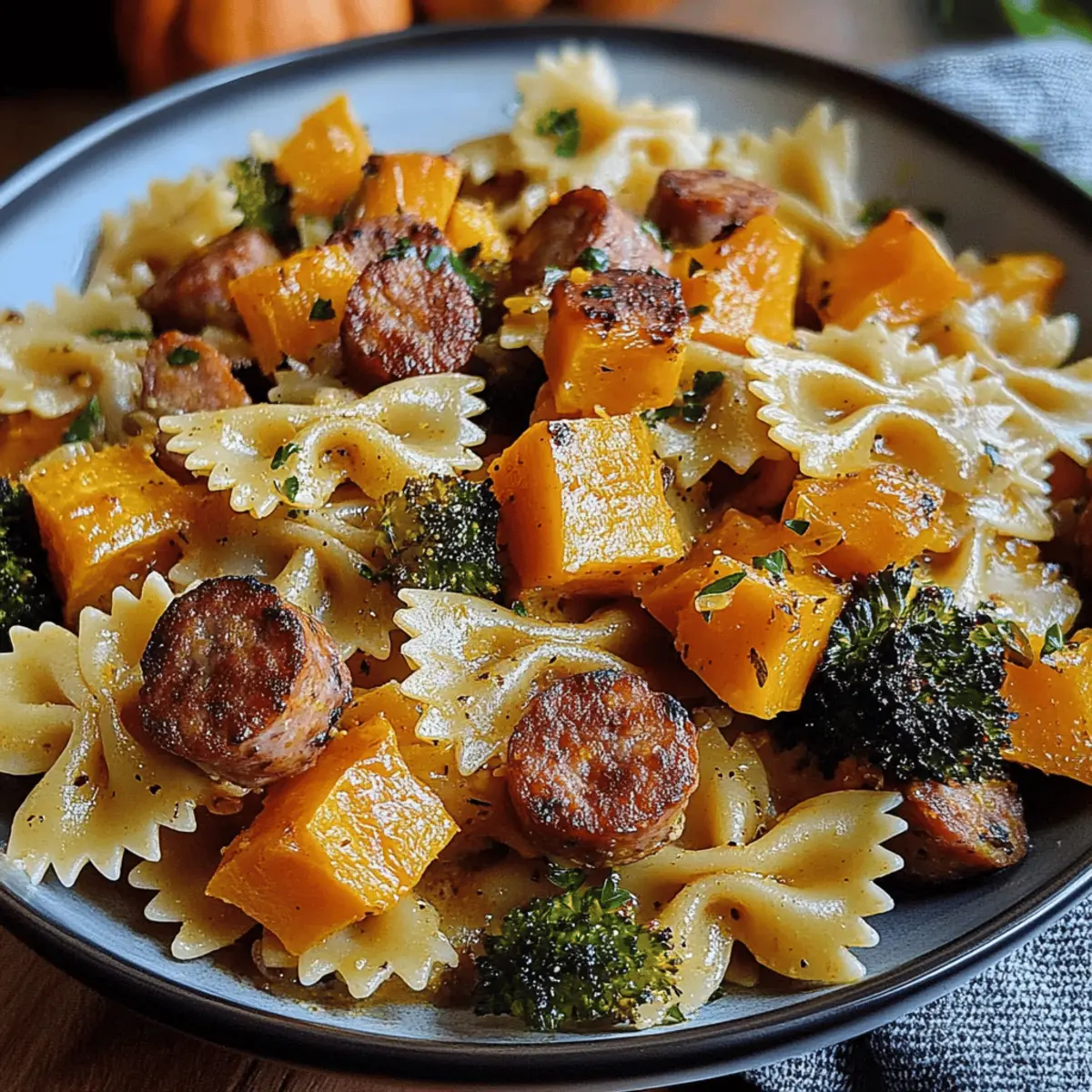 Fill a large pot with water and add a generous pinch of salt, then bring it to a boil over high heat. Add bow tie pasta and cook until al dente, following the package instructions—about 8-10 minutes. Once done, drain the pasta, but be sure to reserve a cup of pasta water; it will help adjust the sauce consistency later for the Sausage Pasta Squash.