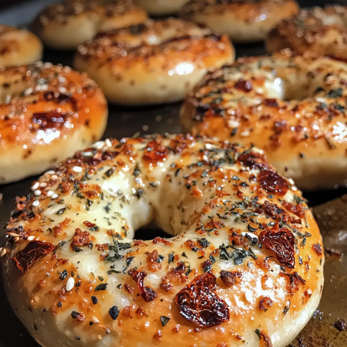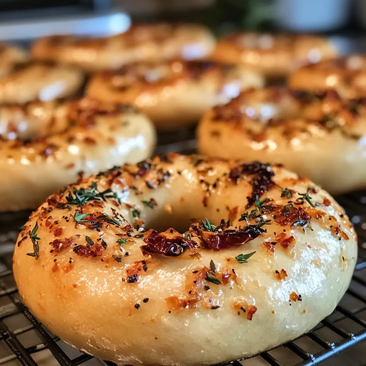Delicious Sourdough Sun Dried Tomato Bagels with Herbs and Cheese that offer a warm, comforting breakfast option.