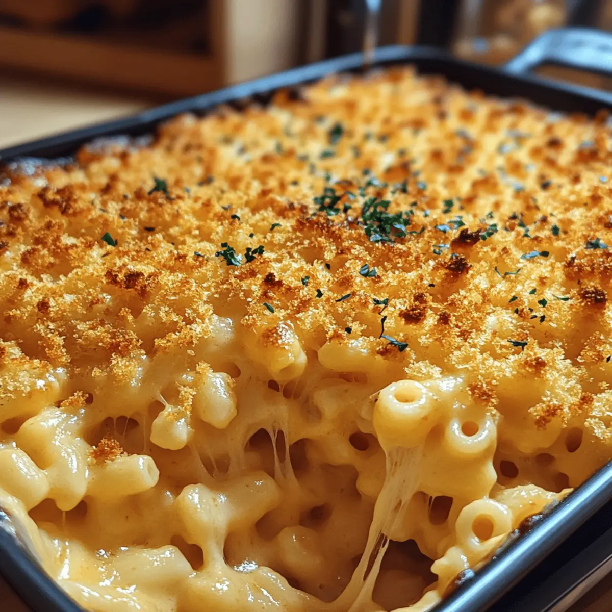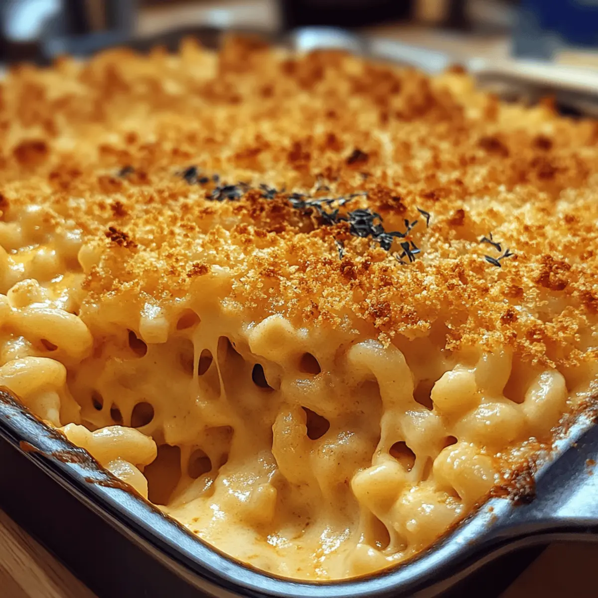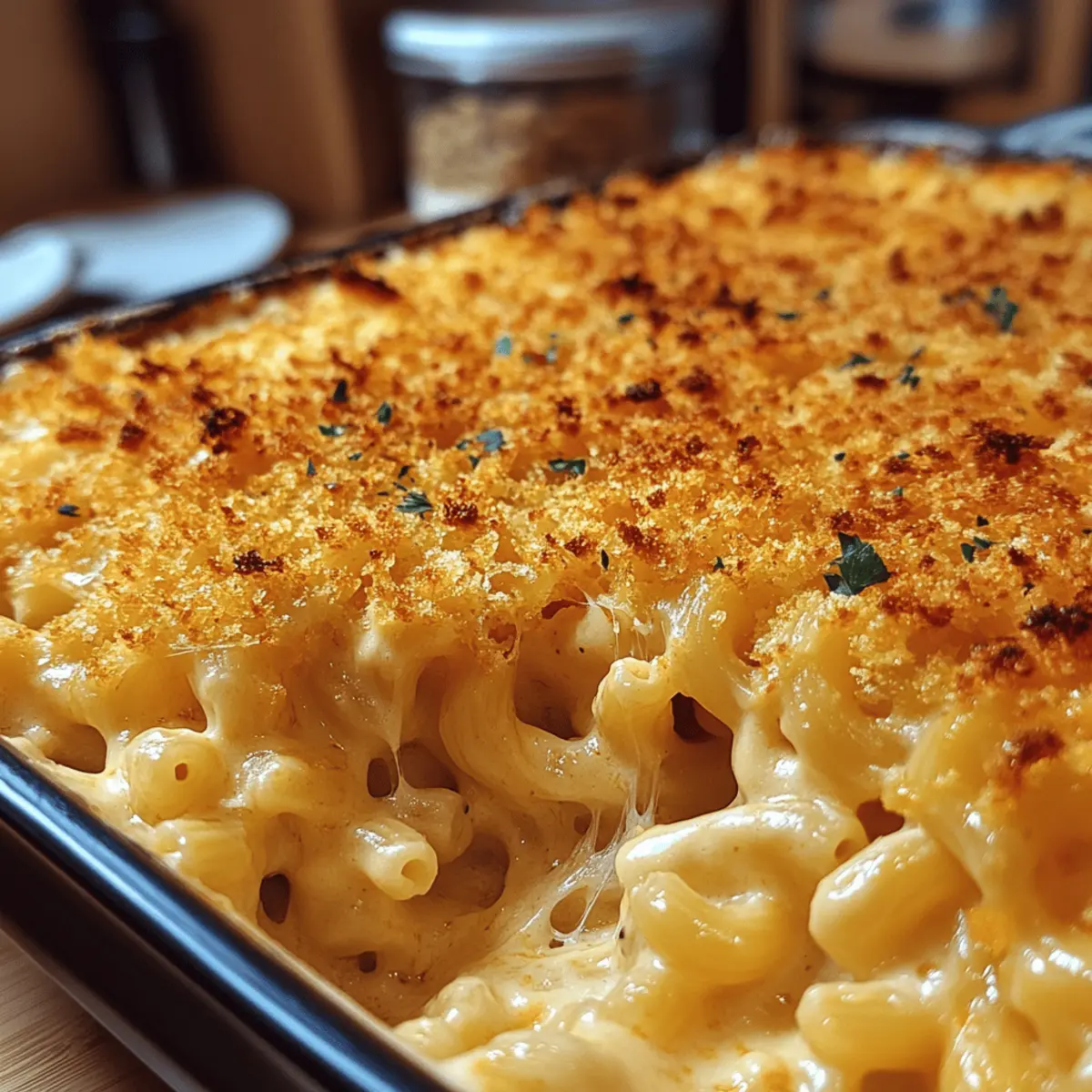 Transfer the macaroni and cheese mixture into your greased baking dish. Top it with 1 cup of panko breadcrumbs for a delightful crunch. Bake in the preheated oven for 25-30 minutes until the top is golden and bubbly, creating a gorgeous contrast against the creamy interior.