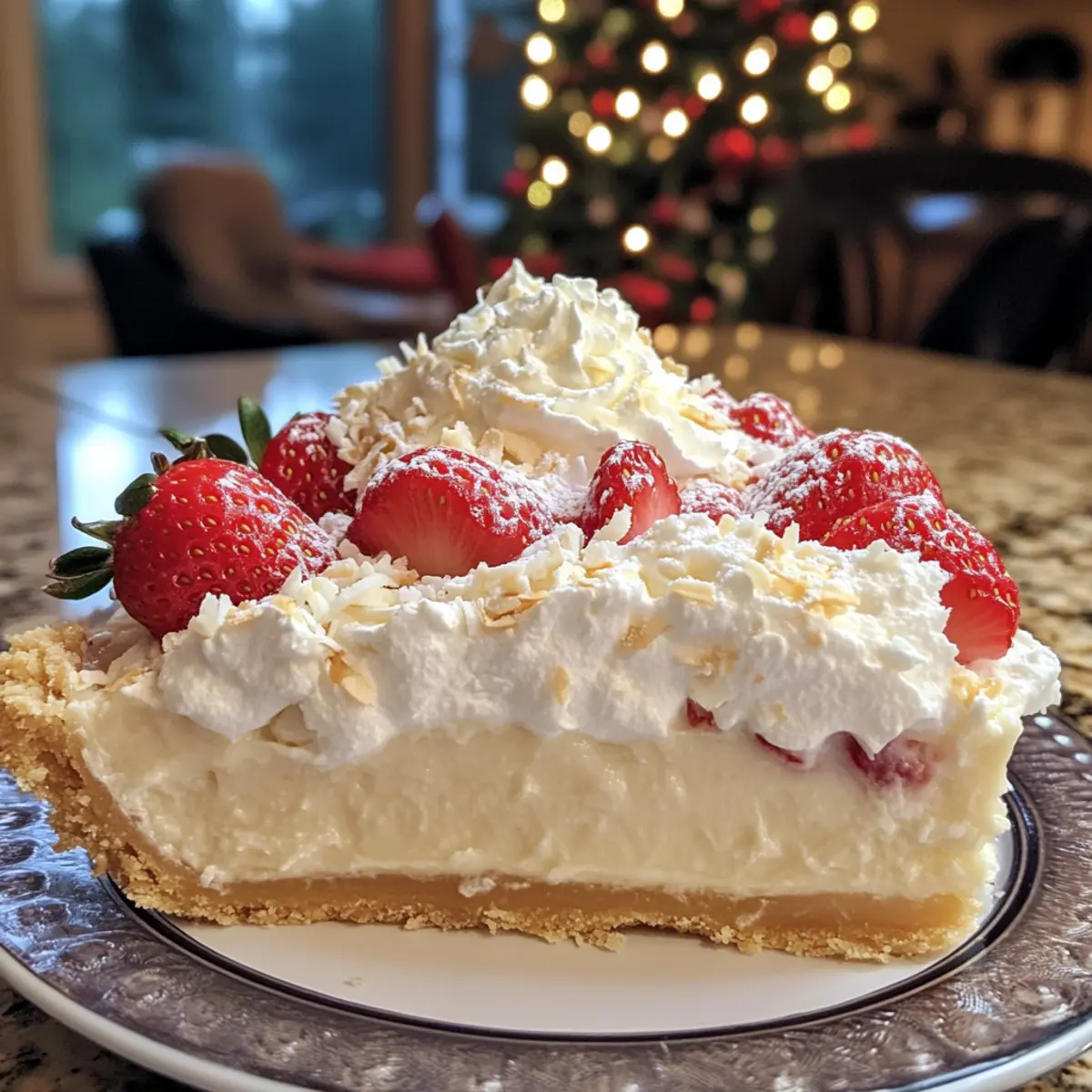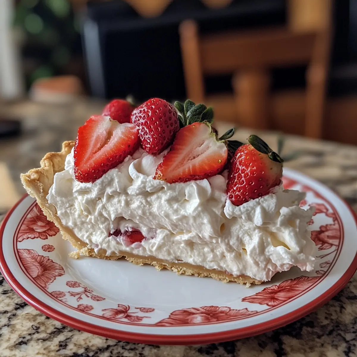 Visual Feast: Adorned with vibrant strawberries and fluffy whipped cream, this pie is a show-stopper, perfect for festive occasions.